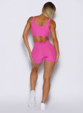 These next-level shorts are a total game changer, meet the Curvemax Shorts in Neon Pink Sorbet by Bombshell. Built to flex with your vibe, these first-of-their-kind shorts feature an adjustable waistband in both the front and back, giving you full control of the fit and feel. Cinch it high for maximum support and coverage, or drop to a lower V-cut for a contoured finish. Sleek, thin ties let you tailor the rise to your liking. Complete the set with the matching Dualmode Bra for a head-to-toe look that’s all you.